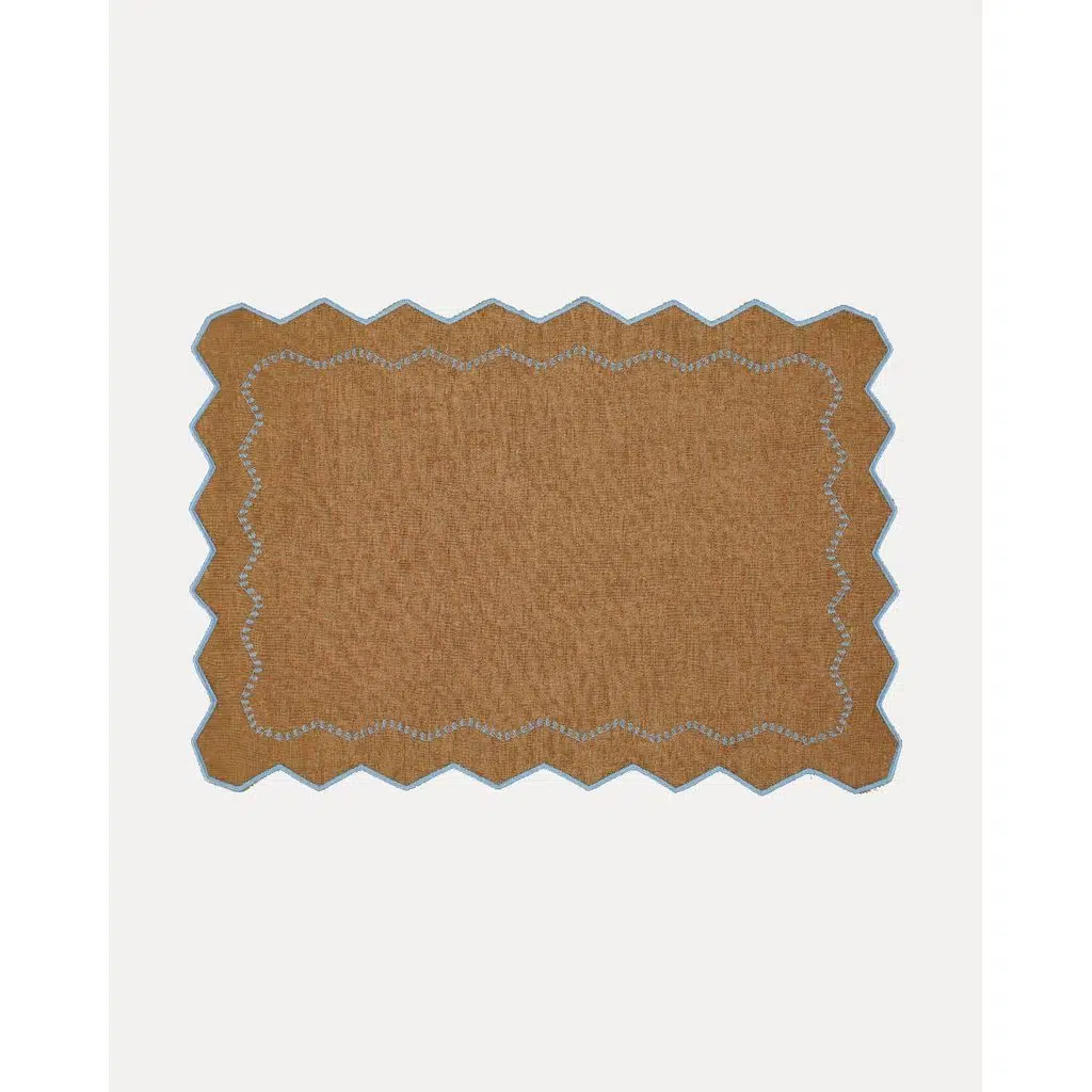 – Kahverengi zemin üzerine bebek mavisi el işçiliği kontür