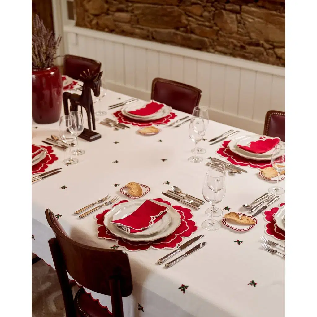 Christmas Holly, yılbaşı sofralarının ruhunu zarafetle yansıtan klasik bir masa örtüsü.