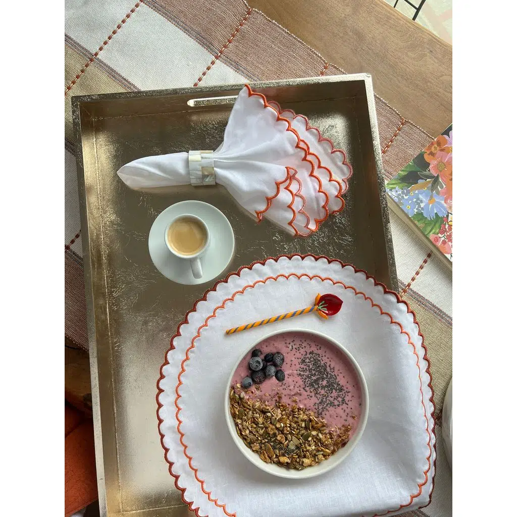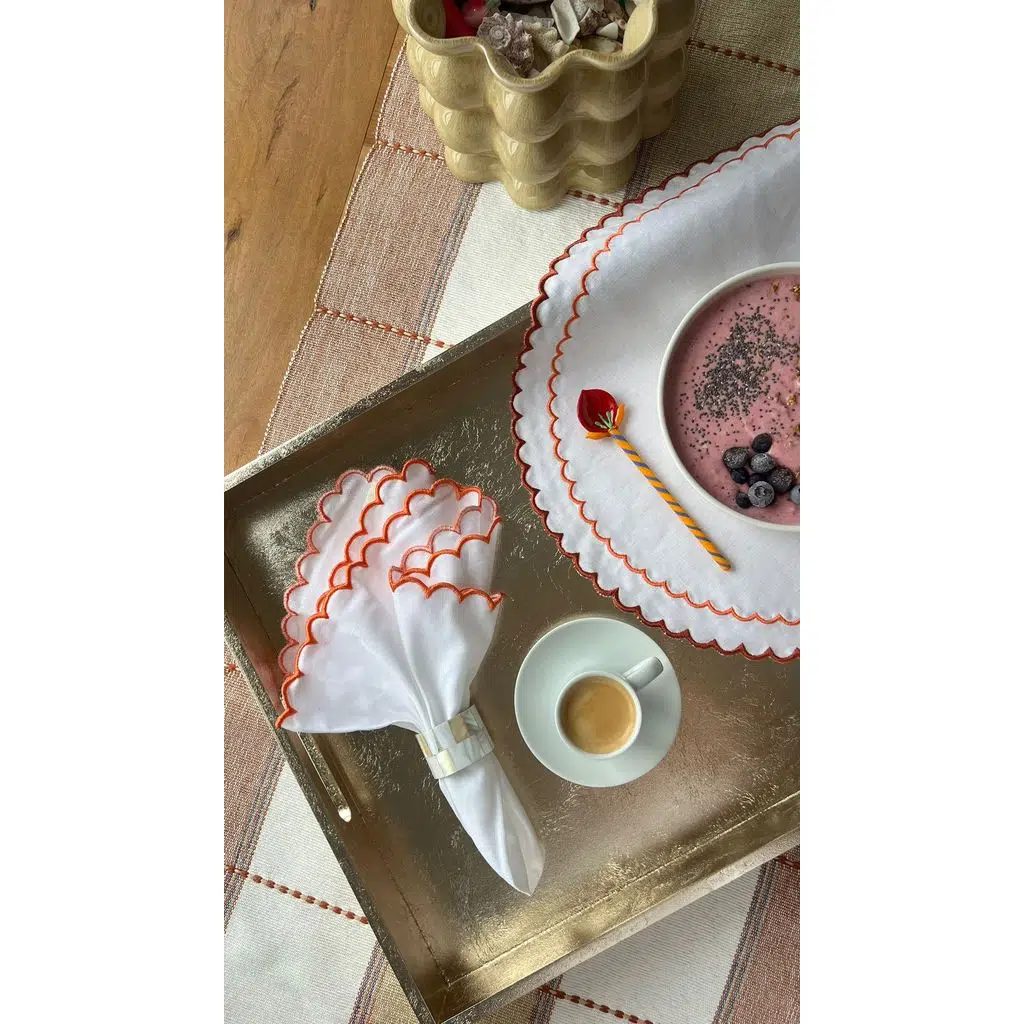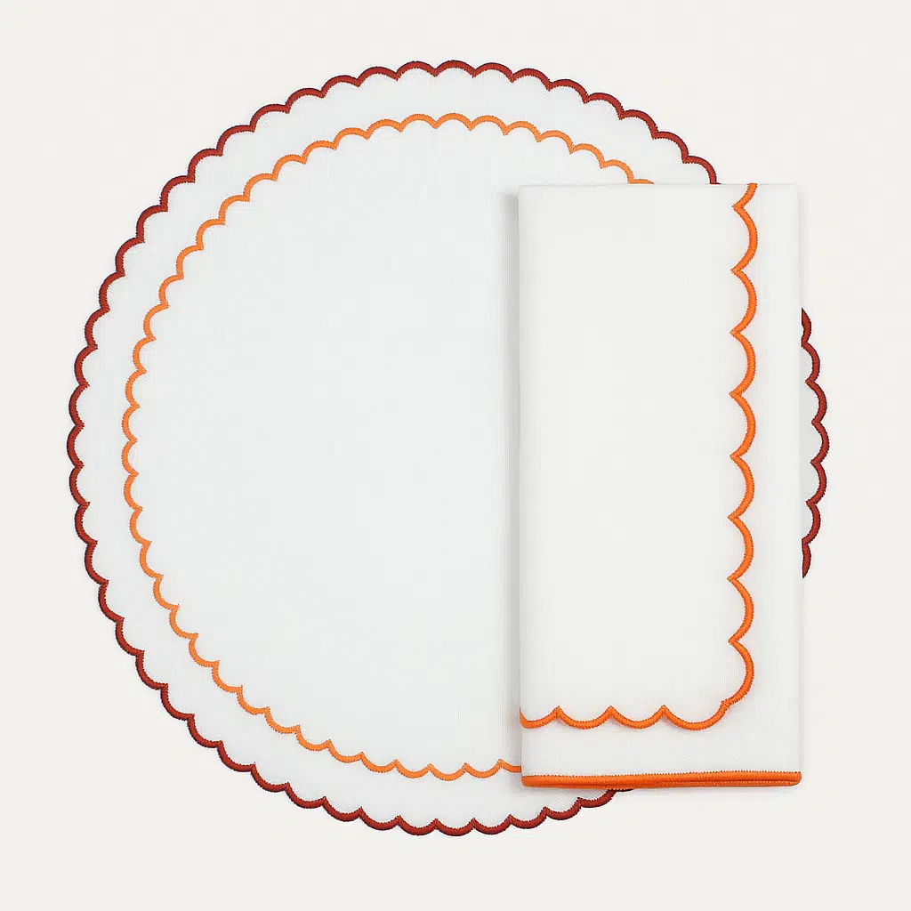 Filipa Amerikan Servis & Peçete Seti – Beyaz / Turuncu
