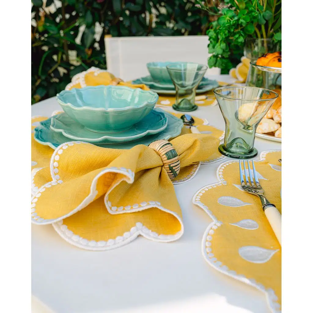 Sıcak yaz akşamları, keyifli hafta sonu brunch’ları ya da balkon yemekleri… Bu set, güneşi masanıza taşıyan özel bir dokunuş sunuyor. Keten ve pamuk karışımı dokusuyla doğallığı ve kaliteyi bir arada hissedersiniz.