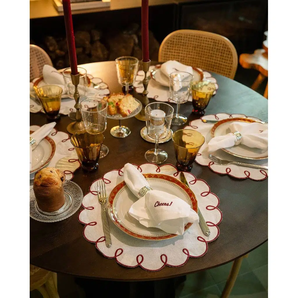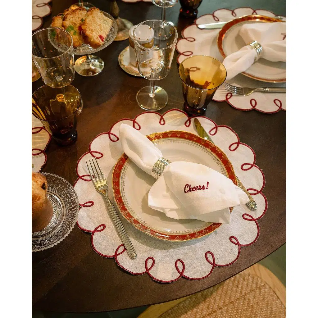 Lisboa Amerikan Servis & Peçete Seti – Beyaz / Bordo