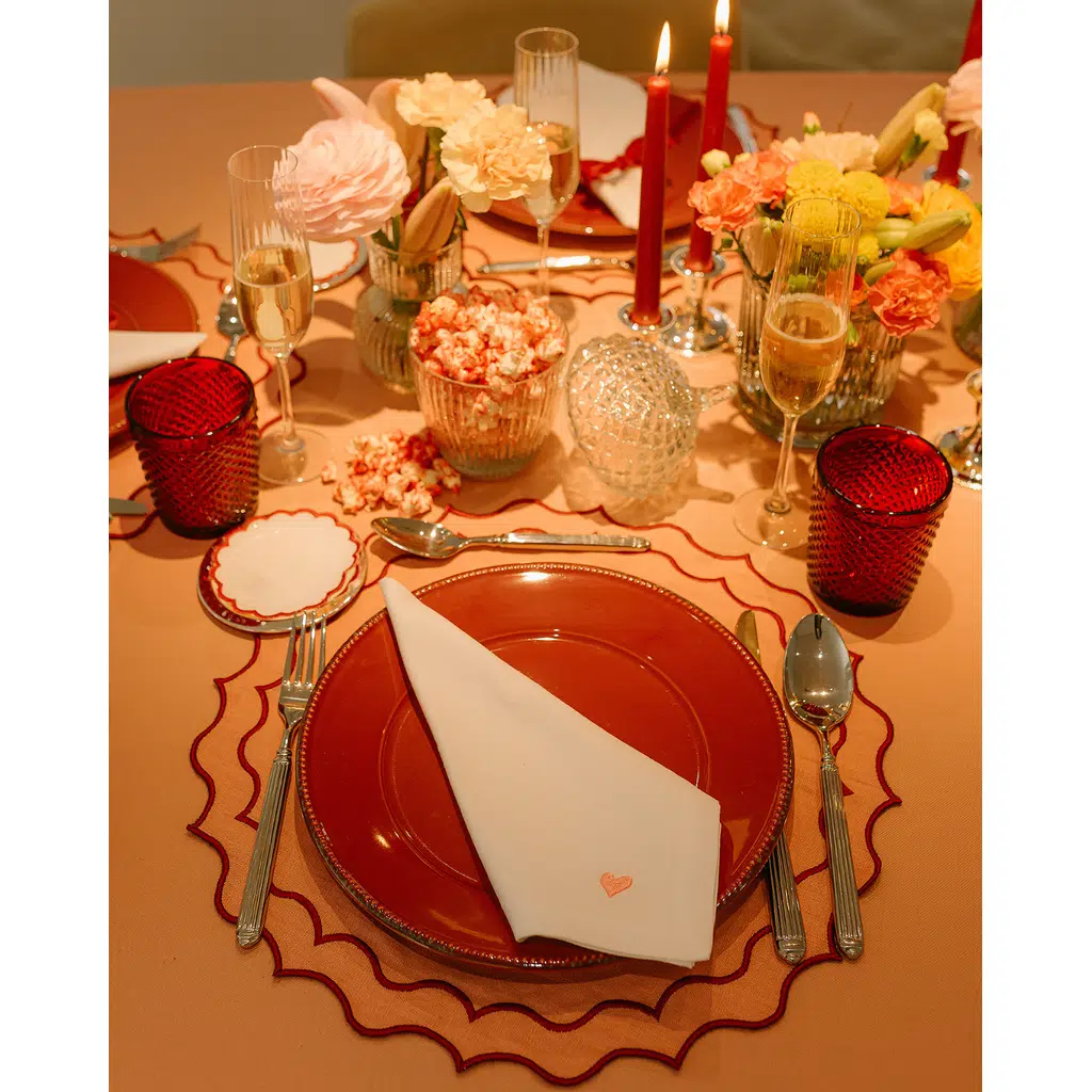 Keten ve pamuk karışımının doğal zarafetiyle üretilen Love Peçete, pembe kalp nakışıyla sofralarınıza romantik ve zarif bir dokunuş katar. Özellikle sevgililer günü, nişan, yıl dönümü gibi özel günlerde ya da dostlarla paylaşılan keyifli akşam yemeklerinde sıcak bir atmosfer yaratır. Yumuşak tonları ve şık tasarımıyla hem günlük kullanımda hem de özel davetlerde ideal bir seçimdir.
