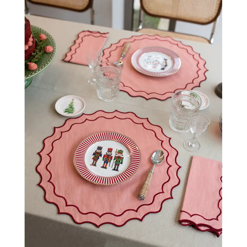 Navy Koleksiyonu’nun somon ve kırmızı tonlarındaki bu özgün versiyonu, deniz kenarı davetlerden yaz akşamı sofralarına kadar her ana canlılık katmak için tasarlandı. Somonun yumuşak romantizmi, kırmızının enerjik vurgusuyla birleşiyor; sonuç ise zamansız, sıcak ve modern bir masa estetiği.