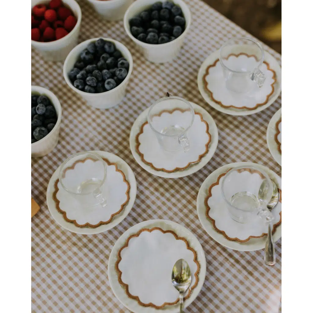 Zarif dalgalı kenar tasarımı ve sıcak bej tonu ile sofralarınıza doğal bir şıklık katıyor. Keten dokusu sayesinde hem şık hem de dayanıklı olan bu bardak altlığı, içecek sunumlarınızı tamamlayan küçük ama etkili bir detaydır.