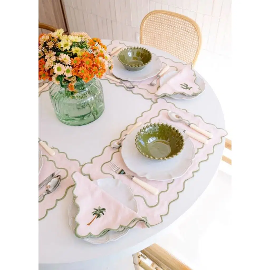 Mariaida Home Ondulado Palm Tree Amerikan Servis & Peçete Seti – Açık Pembe