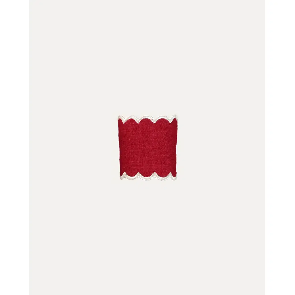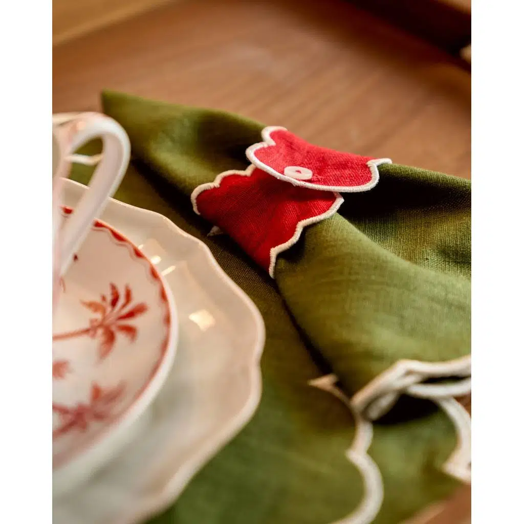 Mariaida Home’un Kırmızı & Beyaz Ring modeli, dokusu ve zarif formuyla masanıza hem düzen hem de karakter katar. El işçiliğini hissettiren kıvrımlı hatları, doğal kumaş yapısı ve ince beyaz biyesiyle özellikle yılbaşı sofralarına mükemmel bir final dokunuşu getirir.