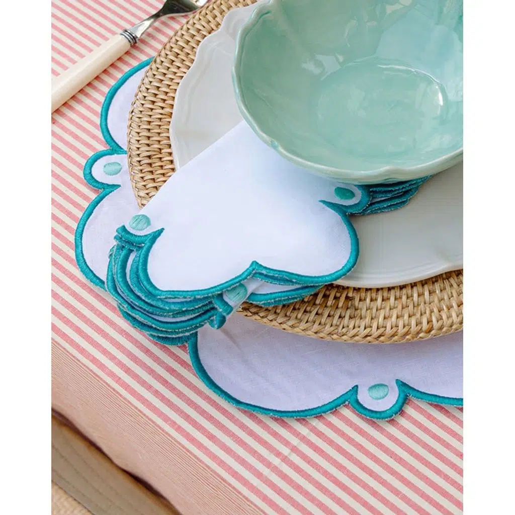 Mariaida Home Viana Amerikan Servis & Peçete Seti – Beyaz / Turkuaz
